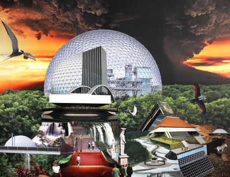 Inspired by classic disaster movies of the '70s, but also commenting on the subjects of world war and climate change. These Climate collages show wild weather patterns: extreme droughts, or global warming causing melting glaciers and tsunamis. Wilds storms causing widespread blackouts. And War shows the effects of bombing, a nuclear conjuring.